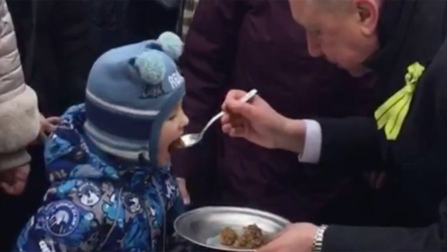 Губернатор Петербурга покормил горожан кашей с ложки на Дворцовой площади