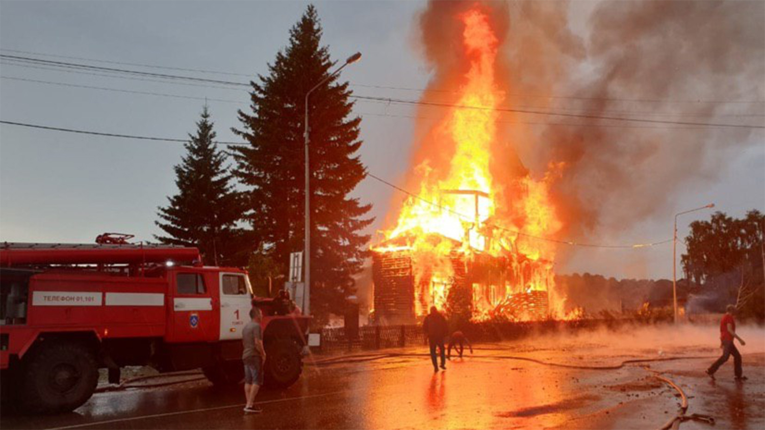 Отмечается, что пожар охватил однопрестольную деревянную церковь, освященную в честь иконы Божией Матери Одигитрии Смоленской 18 мая 1873 года.