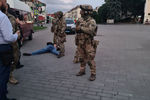 Как только мужчина покинул автобус, силовики скрутили и положили его на землю.