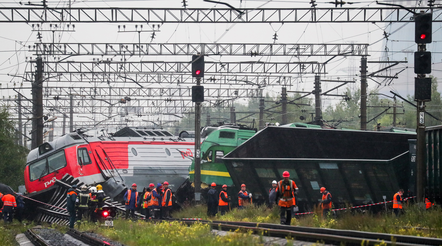 Двое пострадали при столкновении грузовых поездов в Петербурге