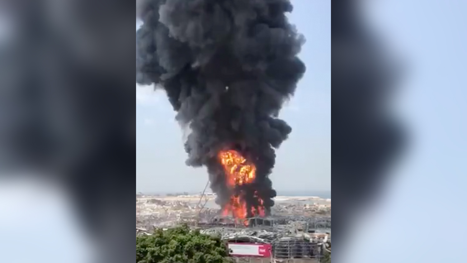 По словам корреспондента агентства, столб дыма поднимается из опустошенного района порта.