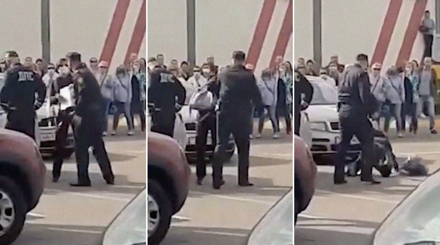 В белорусском Жодино майор милиции ударил женщину в лицо с такой силой, что она упала. После этого его атаковали другие протестующие, передает Telegram-канал TUT.BY.