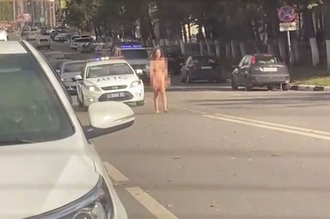 Жители подмосковного города Раменское заметили голую женщину, разгуливающую по проезжей части. Видео было опубликовано в соцсетях.