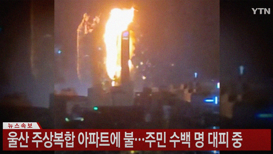 В Южной Корее в городе Ульсан крупное возгорание охватило 33-этажный жилой дом. Об этом сообщает Daily Mail.