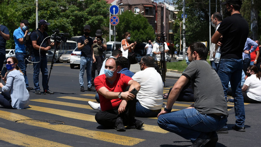 На кадрах видно, как протестующие перекрыли улицу Амиряна, преградив дорогу транспорту. Оказавшимся на данном участке дороги автомобилям пришлось остановиться. Однако водитель микроавтобуса решил не дожидаться окончания акции. Он протаранил живую цепь и проехал в сторону площади Республики.