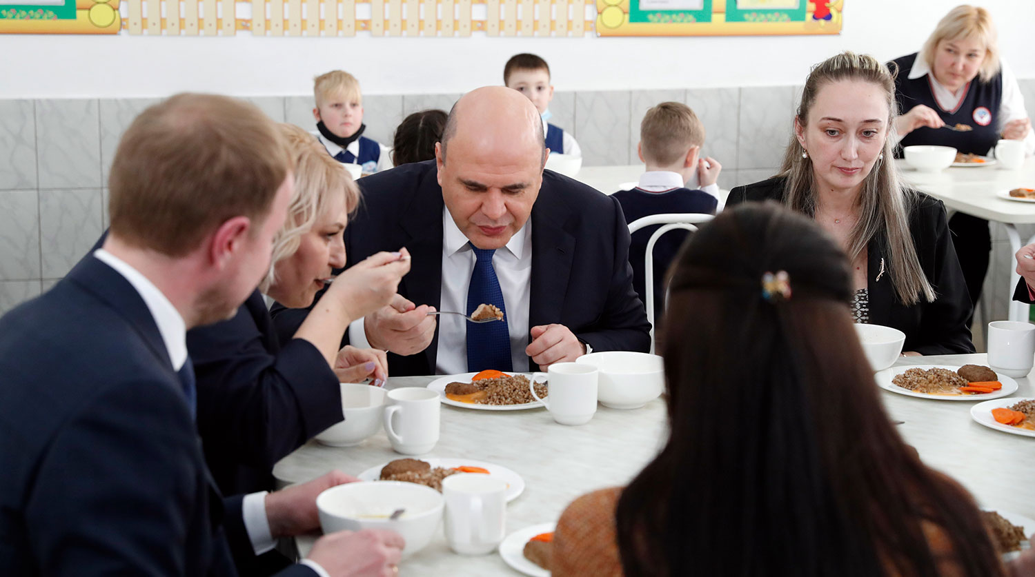 «Не знаю, в какой школе вы учились. Но это было самое вкусное – котлета с гречкой», – обратился премьер к министру просвещения РФ Сергею Кравцову.