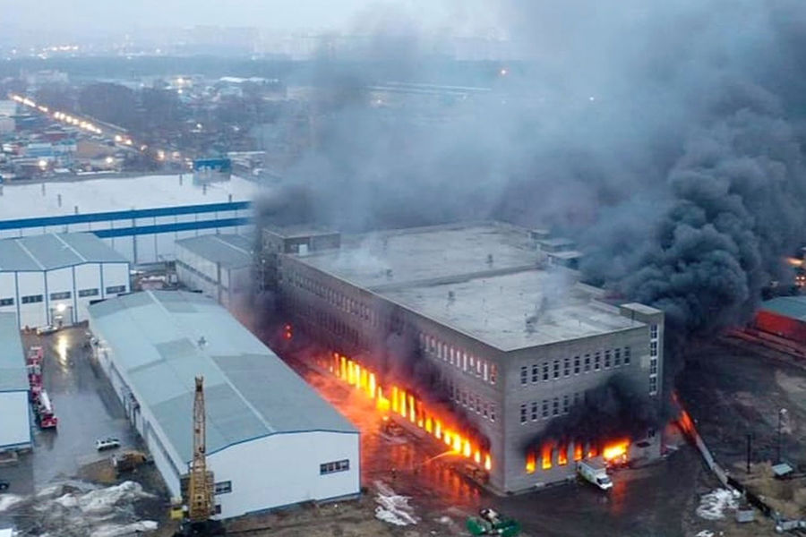 «Площадь пожара увеличилась до 6 тыс. кв. метров. Существует угроза обрушения конструкций», — сказали в пресс-службе.