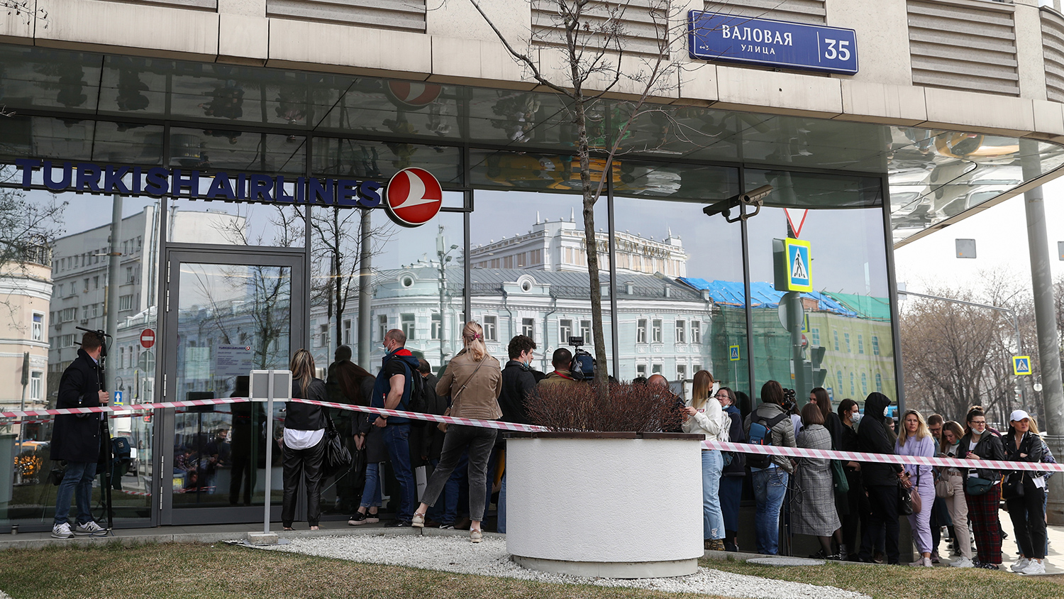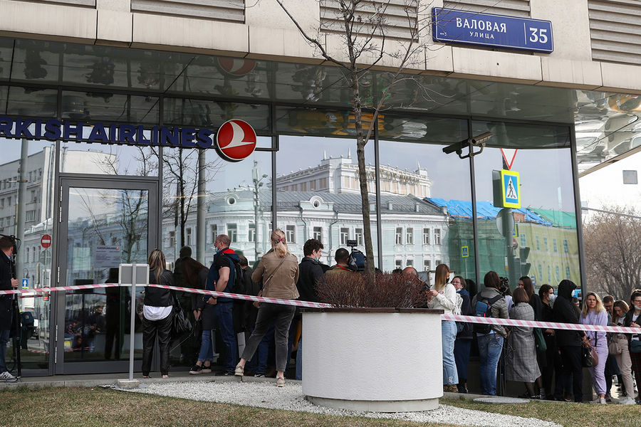 В Москве на Валовой улице возле офиса авиакомпании Turkish Airlines, которая отменила рейсы в Турцию после заявления о приостановке авиасообщения, выстроилась большая очередь. Граждане стоят по несколько часов, чтобы сдать или обменять билеты. RT опубликовало видео с места событий.