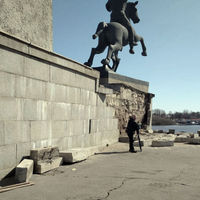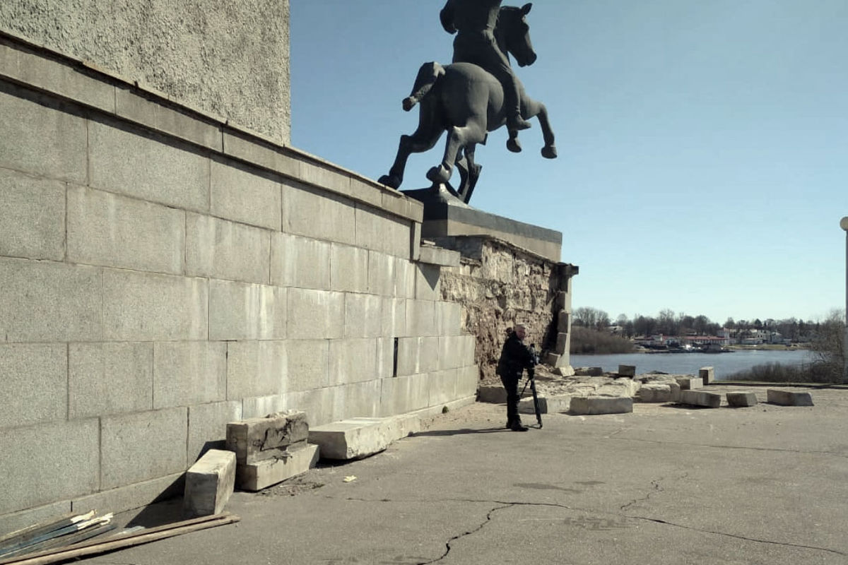 «Сегодня произошло обрушение облицовочных плит южной стороны постамента монумента Победы на Екатерининской горке в Великом Новгороде. 20 апреля должны были начаться противоаварийные работы», — говорится в публикации.