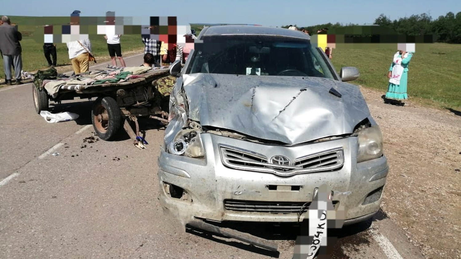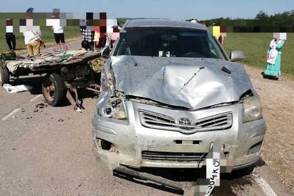 По данным издания, около 10 часов утра 53-летний житель Белокатайского района за рулем Toyota Avensis, поворачивая налево, сбил повозку с лошадью, в которой жители Новомуслимово ехали на сельский праздник.