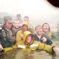 На нем видно, что лес активно горит. Вокруг водоема густой дым. Десантники сообщили на камеру, что «чуть не сдохли» две минуты назад, но выжили. Многие из них кашляли, терли глаза. Однако в основном мужчины смеялись и радовались, стоя в воде. Они также отметили, что картина, которая развернулась перед ними, была страшной.