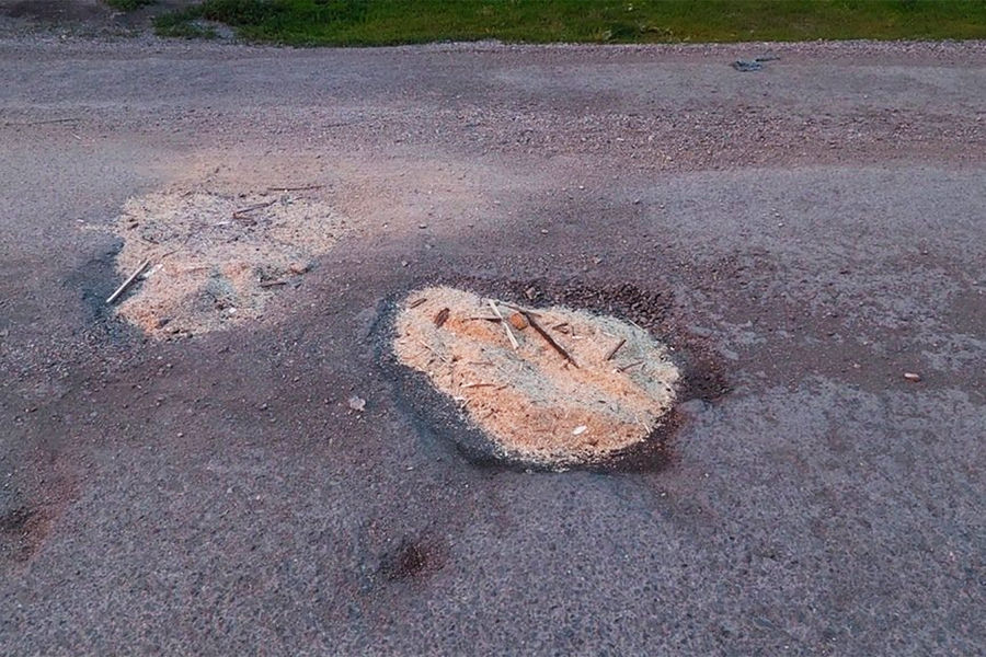 Житель Кемерово Роман Янченко обнаружил дорогу, на которой «отремонтировали» ямы, засыпав их опилками. Об этом рассказал в своем аккаунте в Facebook, а также выложил видео с места события.