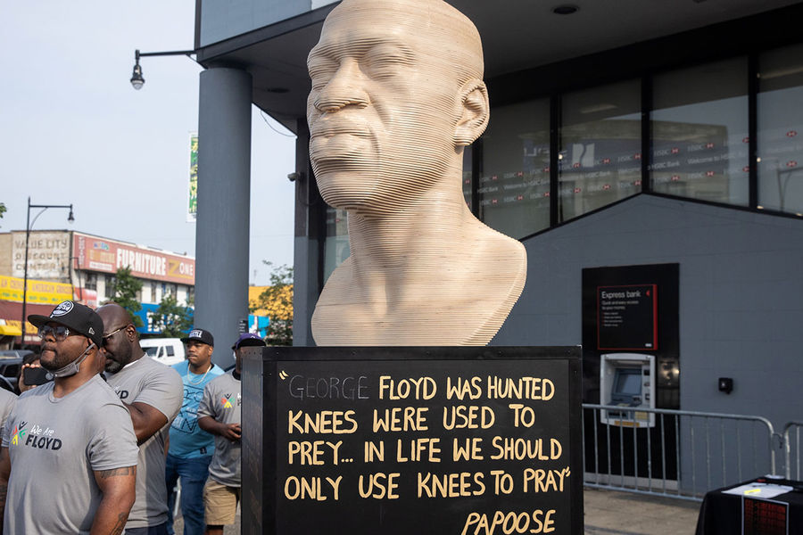 Памятник погибшему при задержании афроамериканцу Джорджу Флойду в Бруклине покрасили в черный цвет, сообщает NBC News.
