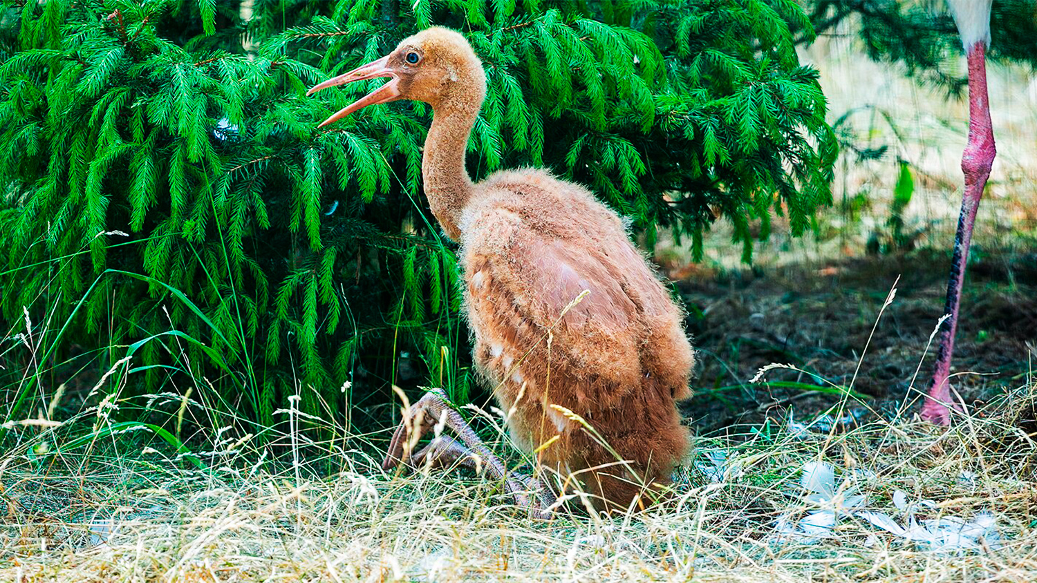 По ее словам, когда птенец вырастет, его отпустят на волю. Пока птица не похожа на взрослых особей и покрыта коричнево-рыжим пухом. Примерно через полгода оперение станет бурым, через три года — белоснежным.