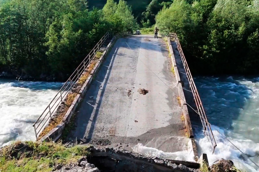 В результате обрушения моста через реку Кодор в Кодорском ущелье Абхазии отрезанными оказались несколько сел и две военные части Погрануправления ФСБ России, сообщает МЧС Абхазии.