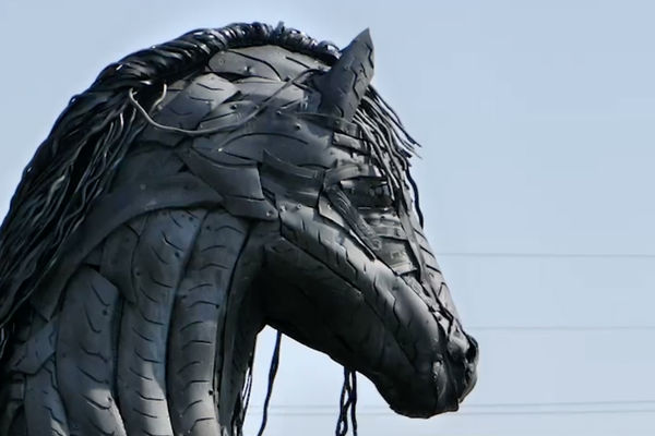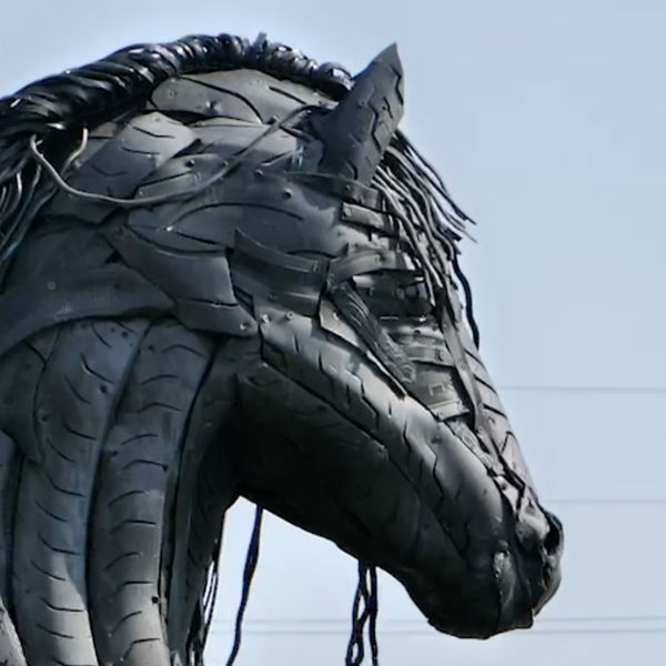 Шиномонтажник Виталий Дипринда из Челябинской области сделал скульптуру коня, используя покрышки. Об этом сообщает Telegram-канал Mash.