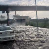 На кадрах видно, что в городе затоплены дороги и тротуары, в результате чего автобусы и автомобили бороздят волны грязной воды, а пешеходы с трудом передвигаются.