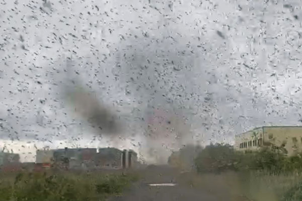 На кадрах, которые снял местный житель, видно, как рой насекомых собирается в столб, а потом распадается.
