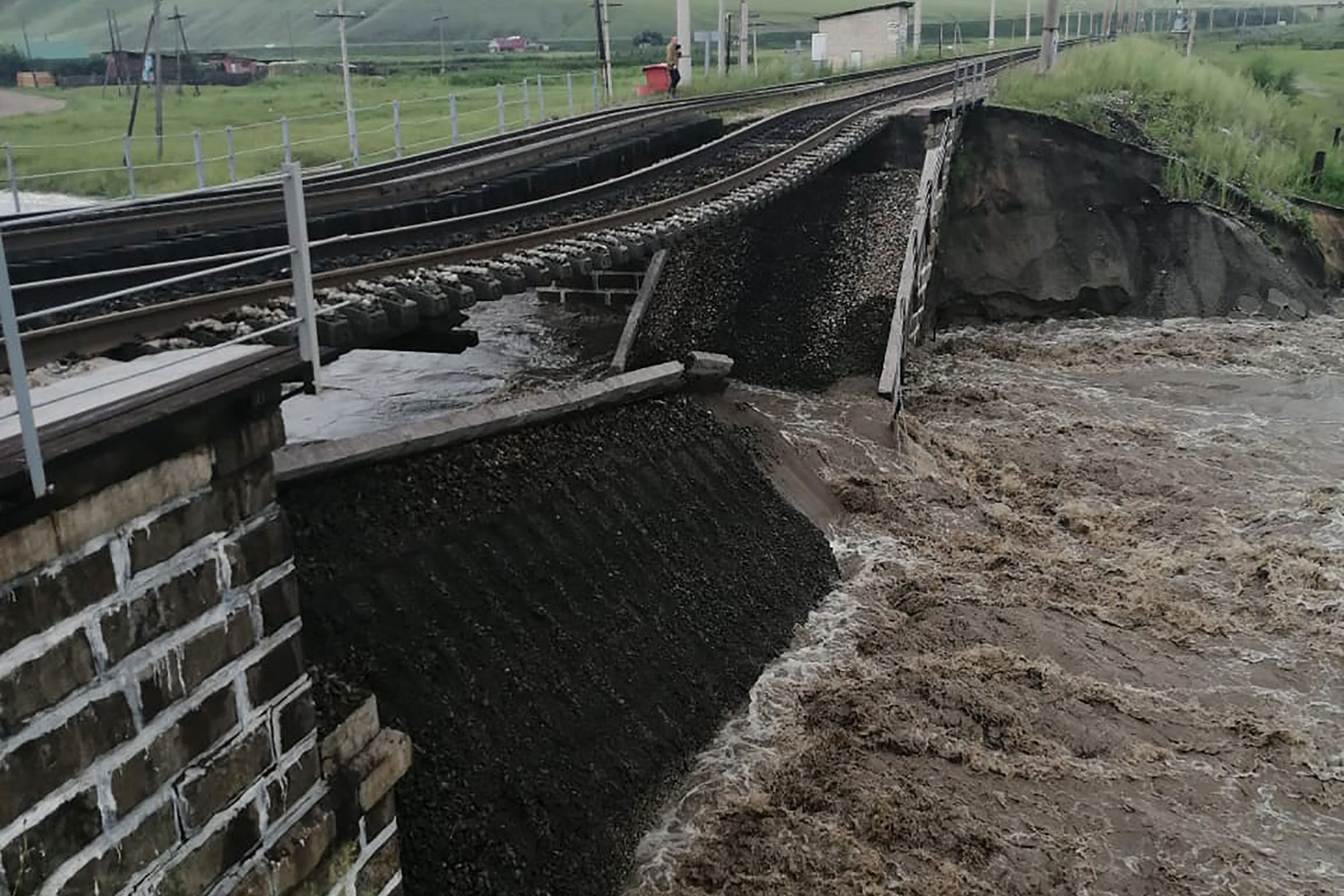 В Сретенском районе Забайкальского края после проливных дожей обрушился мост на Транссибирской железнодорожной магистрали. Об этом сообщили в местном МЧС.
