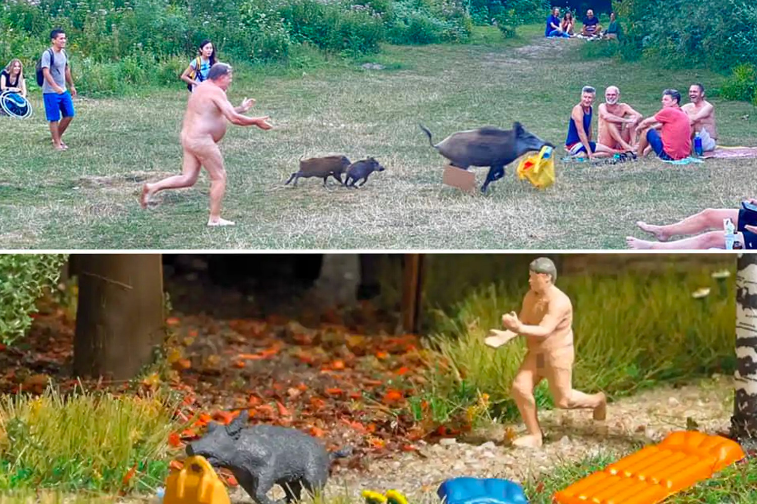 Из изображения погони голого мужчины за кабаном был создан набор пластиковых фигурок стоимостью €13,99. Его можно купить в качестве украшения ландшафта железнодорожного набора, сообщает The Guardian.