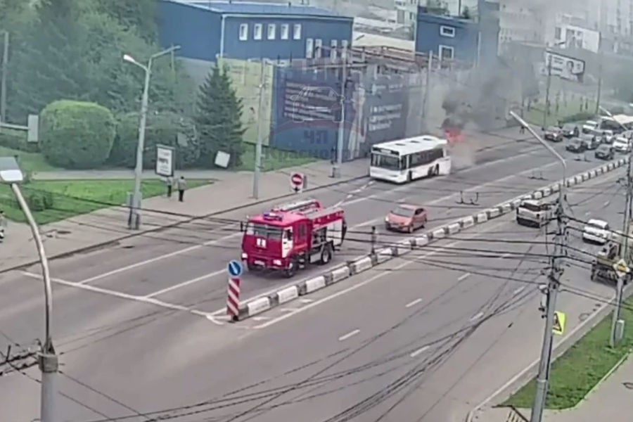 Инцидент произошел между остановками «Кравченко» и «ГорДК». Кадры пожара были сняты камерой видеонаблюдения.