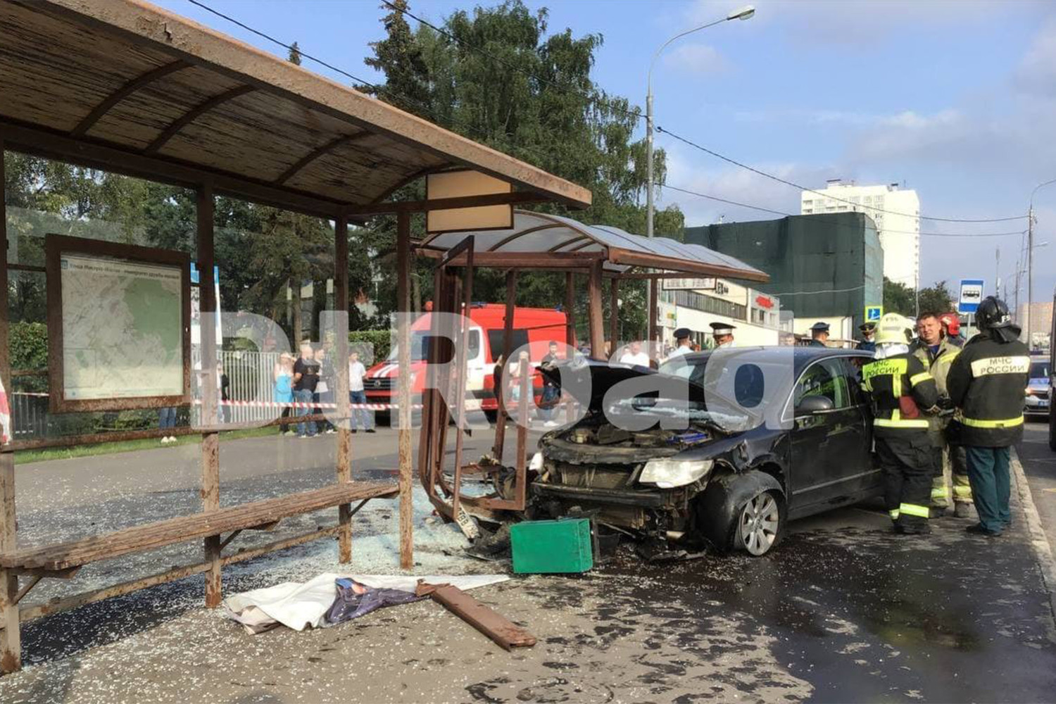 На юго-западе Москвы иномарка протаранила автобусную остановку, на которой в этот момент находились люди, сообщает 5-tv.ru.