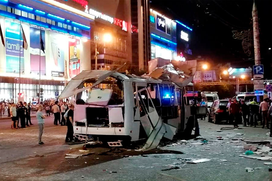 Автобус взорвался на улице Кольцовской в Воронеже вечером 12 августа. В салоне пассажирского транспорта находились около 30 человек: 18 пострадали, одна женщина умерла в реанимации.