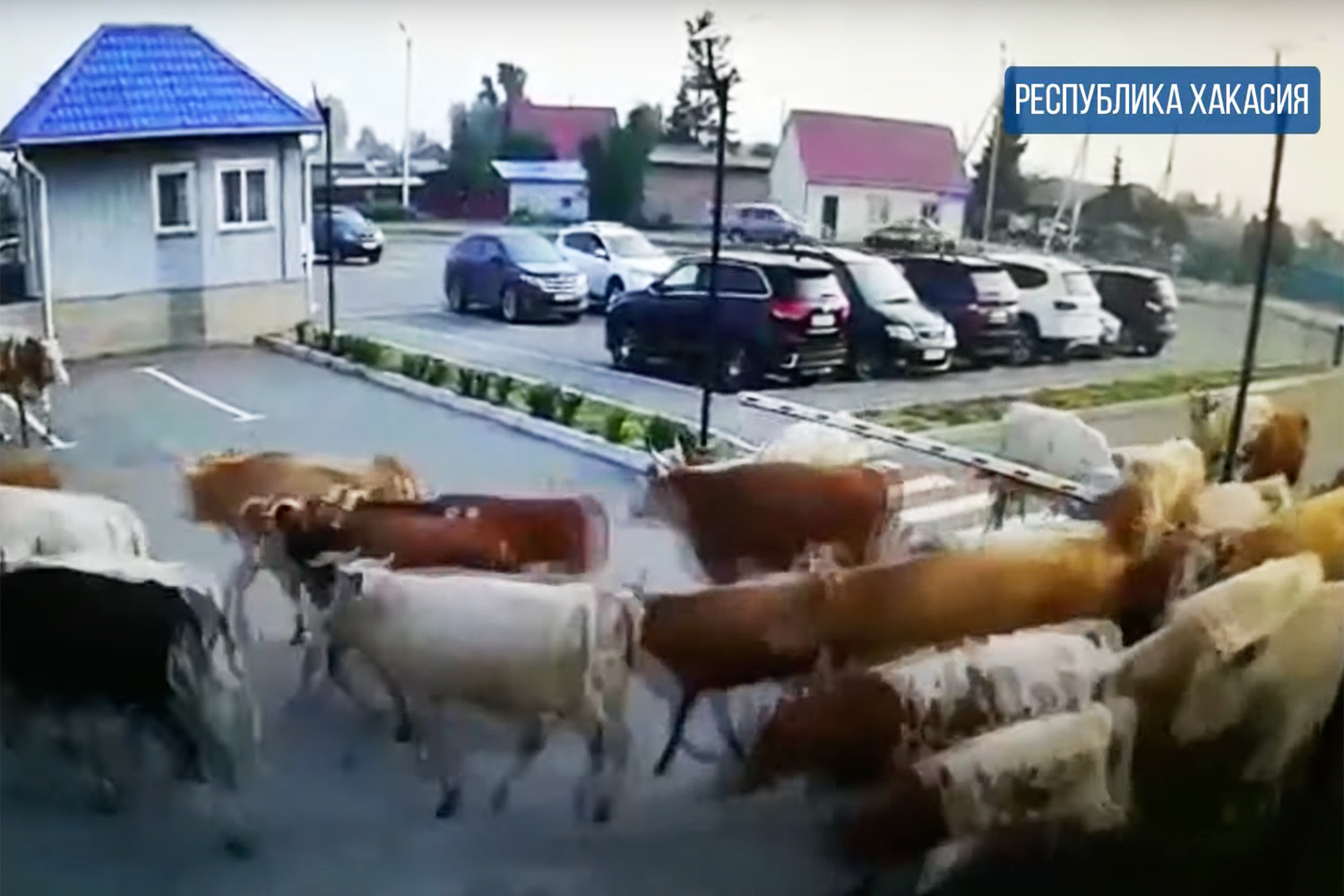 В Абакане стадо из 130 коров сбежали от фермера и заняли парковку аэропорта. Об этом сообщает Сибирское управление МВД на транспорте.
