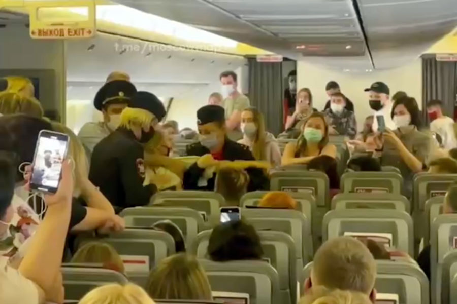 В Москве женщина устроила дебош на рейсе, который должен был вылететь в турецкую Анталью. Причиной конфликта якобы послужила просьба надеть маску, сообщает Telegram-канал «Новости Москвы».