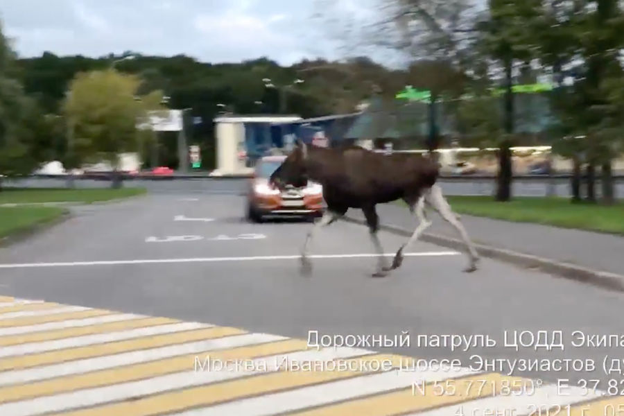 Животное попало на камеры сотрудников ЦОДД, патрулировавших улицы. Лось перебежал через дорогу, водитель единственной машины, оказавшейся на этой дороге, успел затормозить и пропустил зверя.