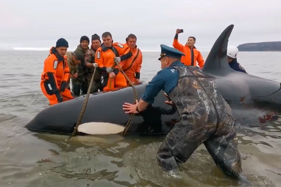 По данным МЧС, в операции по спасению косатки были задействованы 27 человек и девять единиц техники от Магаданского пожарно-спасательного гарнизона.