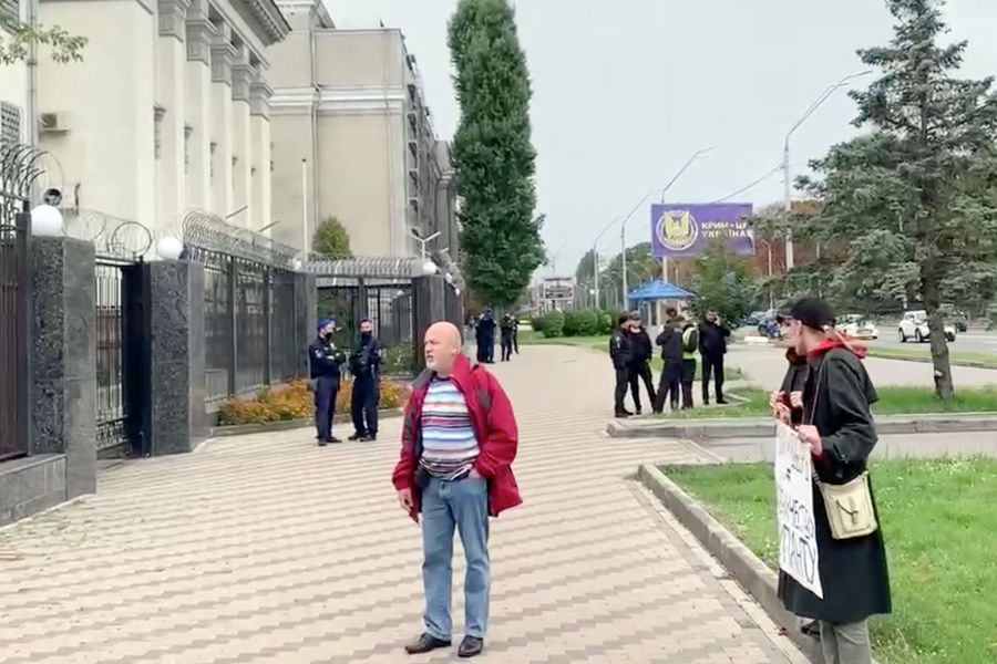 У здания посольства России в Киеве, где находится избирательный участок для голосования на выборах в Госдуму, один мужчина устроил одиночный пикет, а другой накричал на собравшихся. Видео инцидента опубликовал Telegram-канал «Политика Страны».