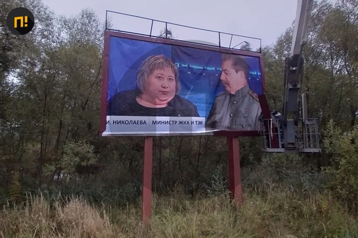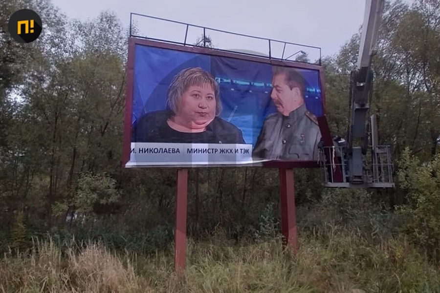 В городе Боровичи, расположенном в Новгородской области, повесили баннер со Сталиным, смотрящим на местного министра по ЖКХ Ирину Николаеву. Об этом сообщает Telegram-канал «Подъем».