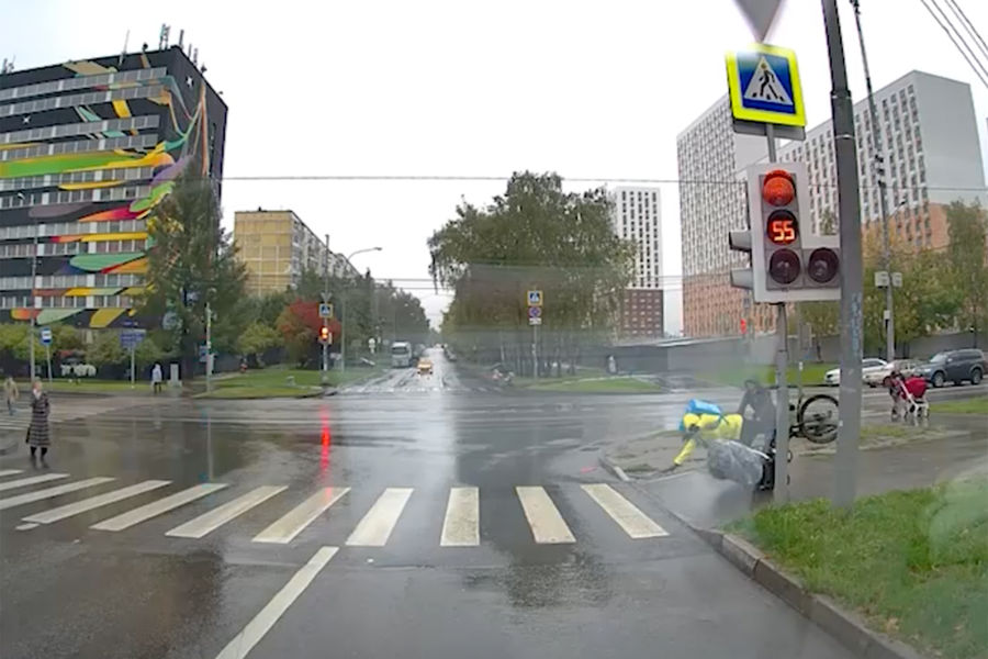 В Москве курьер компании «Яндекс» налетел на коляску с ребенком, видео произошедшего опубликовал Telegram-канал Shot.