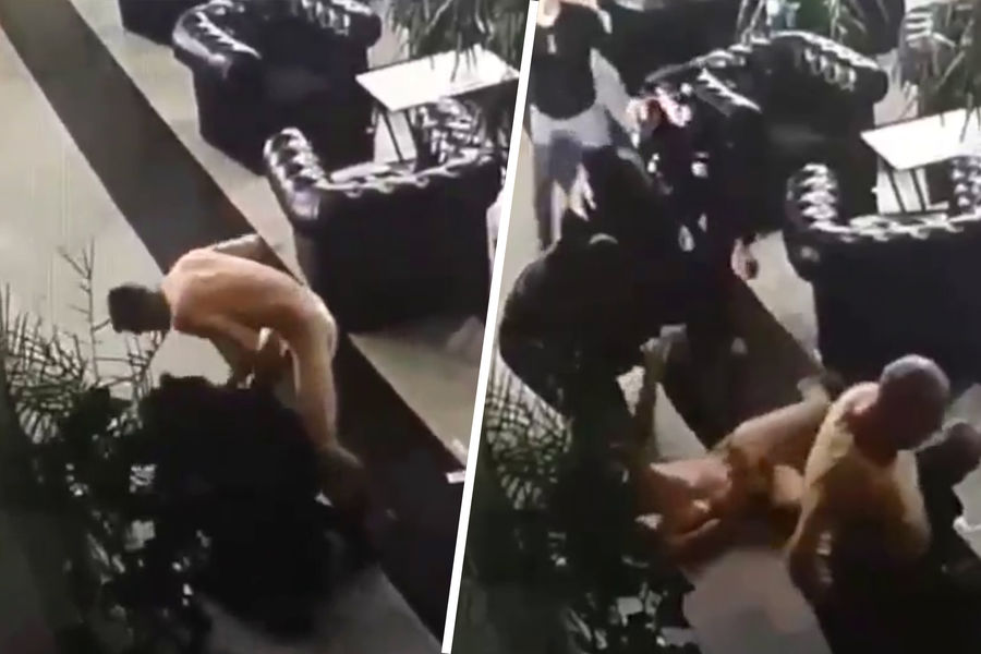 Кадры инцидента появились в соцсетях 30 сентября 2021 года. На видеозаписи видно, как в зал ожидания вбегает полностью обнаженный человек, после чего бросается на пожилого охранника и начинает избивать.