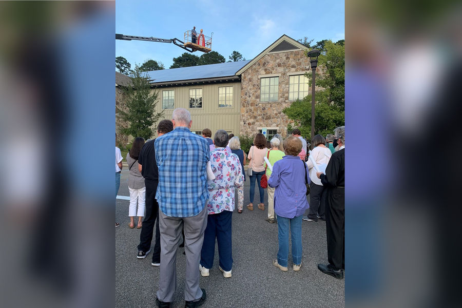 По информации портала, епископа подняли на подъемном кране над крышей, откуда она поздоровалась с прихожанами, помолилась и окропила солнечные панели на церковном здании святой водой. Собравшиеся вокруг члены прихода тем временем пели популярный в Америке религиозный гимн «Этот маленький мой свет, да будет он светить!».