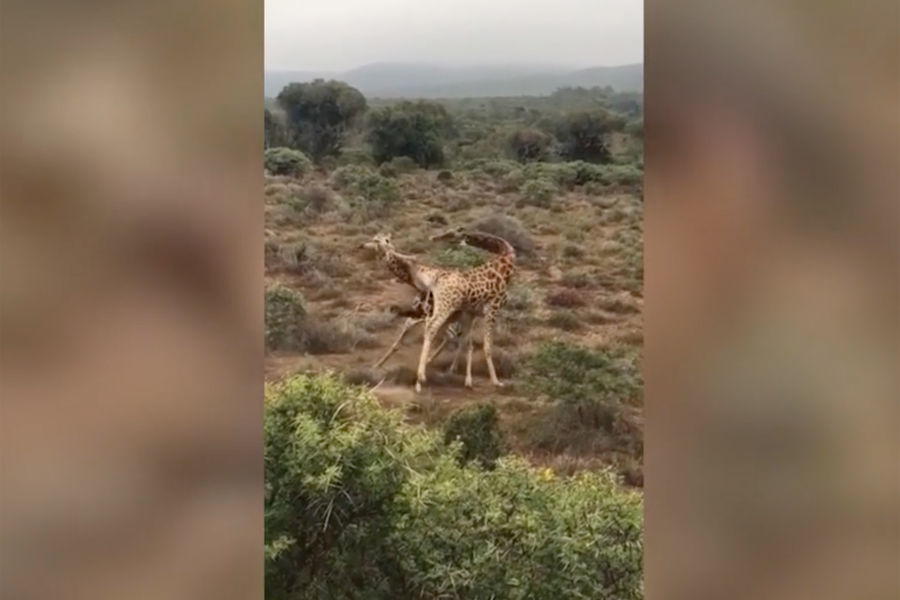 Два жирафа устроили драку в стиле ММА на глазах у людей