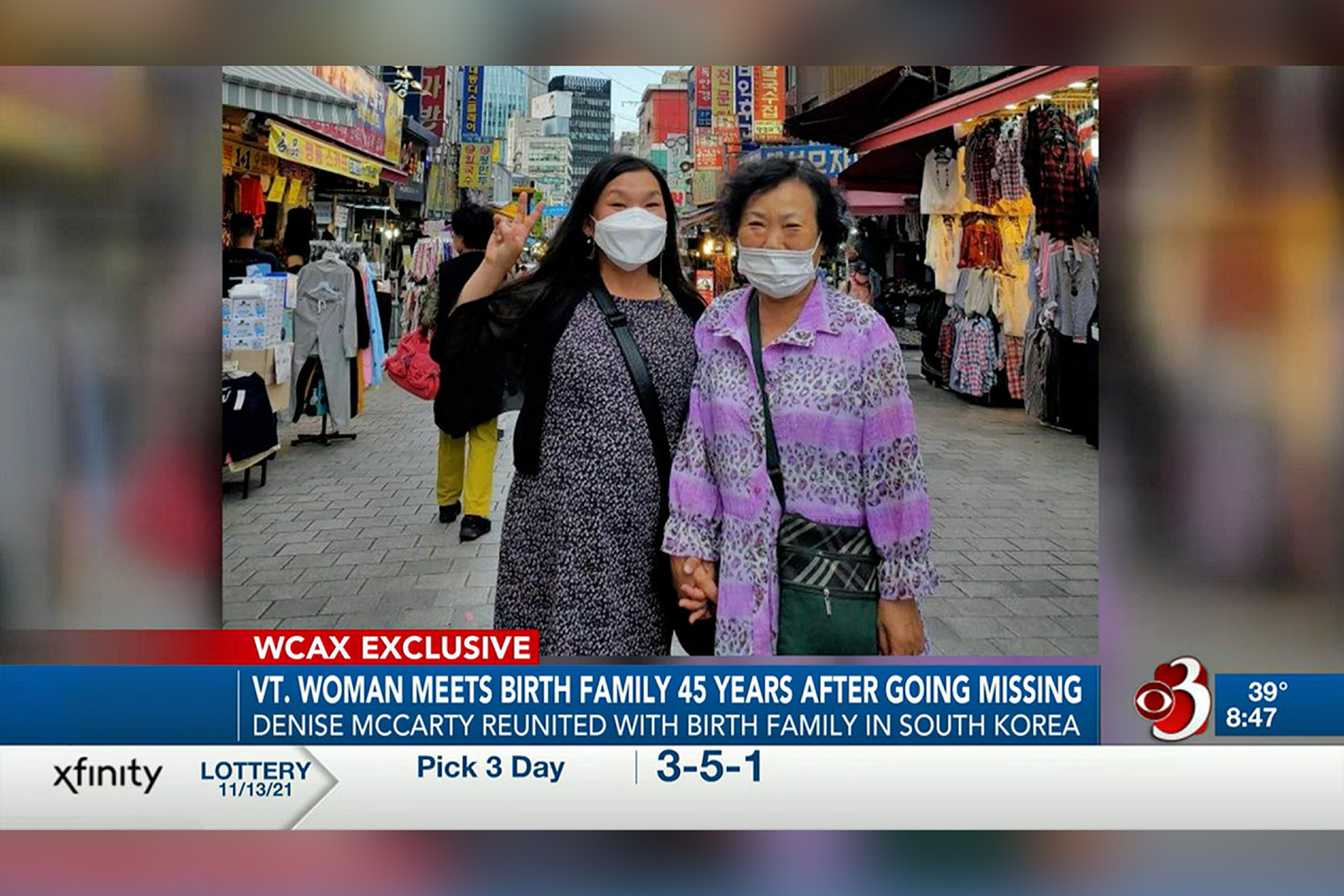 Сорокасемилетняя жительница штата Вермонт Денис МакКарти воссоединилась со своей биологической семьей в Республике Корея спустя 45 лет после того, как родные ее потеряли. Об этом сообщает WCAX.