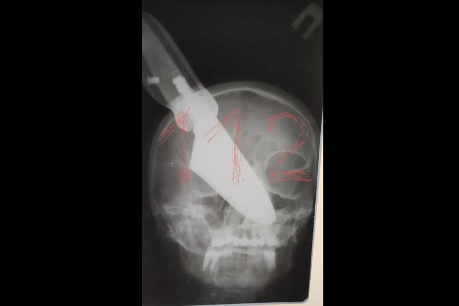 Клинок застрял в лице женщины, которая сумела отбиться от мужа и выбежать на улицу, где позвала на помощь.