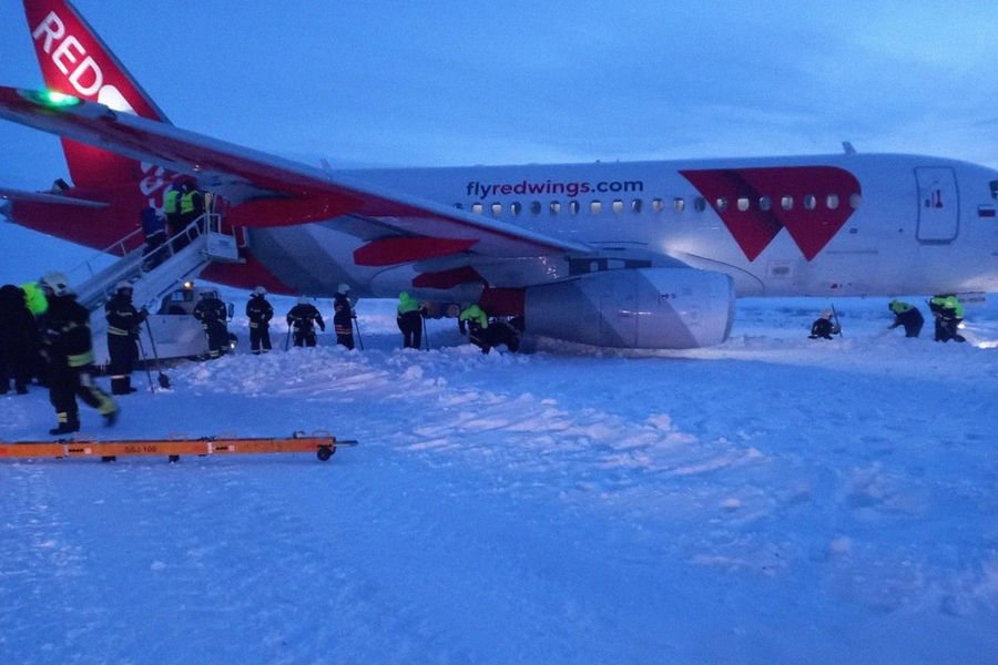 Пассажирский самолет Sukhoi Superjet — 100 выкатился за пределы взлетно-посадочной полосы на расстояние около 30 метров при посадке в аэропорту Норильска. Об этом сообщается на сайте Следственного комитета России.