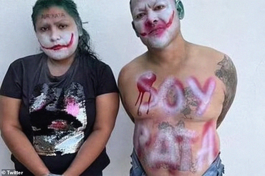 Полицейские из Мексики нашли грабителей, которых привязали к столбу и раскрасили в стиле Джокера, пишет Daily Mail.