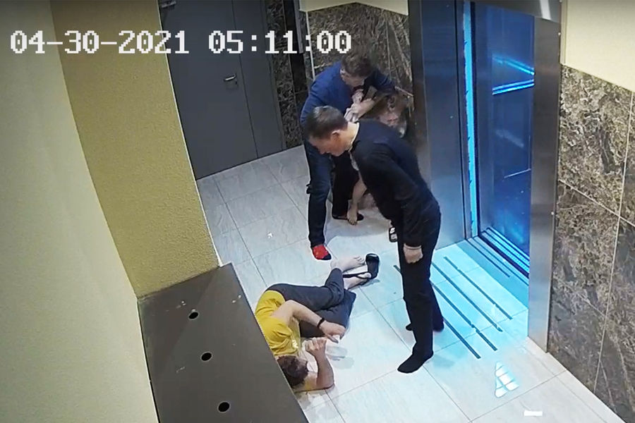 На видео Зюзин бьет руками и ногами мужчину, который лежит на полу. В это время друг депутата держит супругу поверженного противника, чтобы та не вмешивалась в драку.
