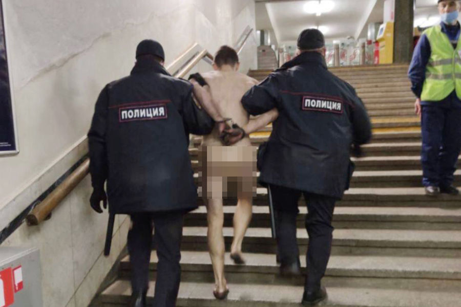 Readovka также опубликовала фото дебошира — в момент задержания он был полностью голым и не имел на себе обуви. По данным издания, мужчина прыгнул на крышу вагона под воздействием наркотических веществ.