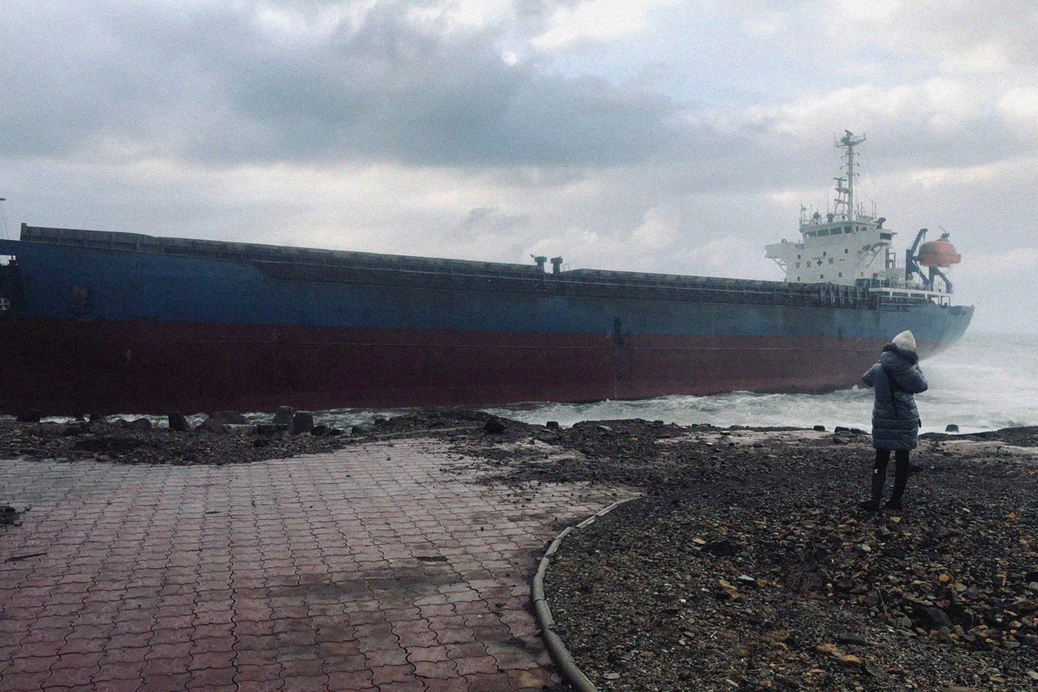 Как сообщает ТАСС, Xing Yuan выбросило на берег в результате шторма.
