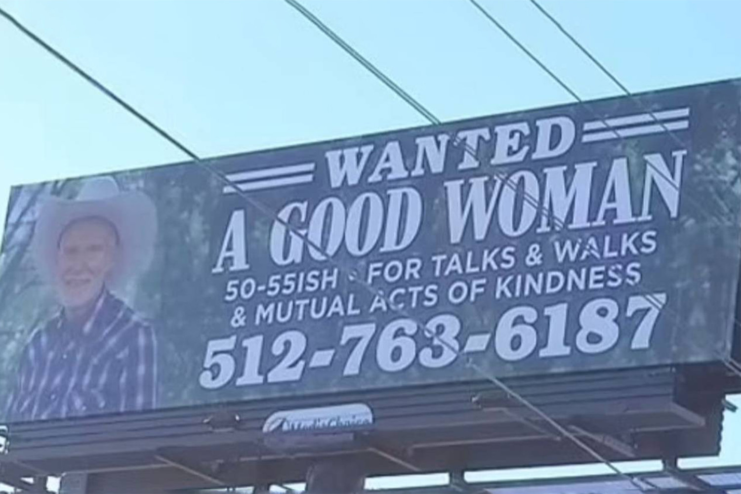 «Разыскивается хорошая женщина 50-55 лет. Разговоры, прогулки, взаимные добрые дела», — написал Джим на билборде.