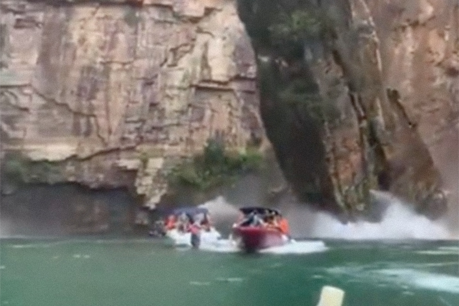 Большой кусок скалы обрушился на катера в округе Капитолиу в Бразилии, сообщает Folha De St. Paolo.