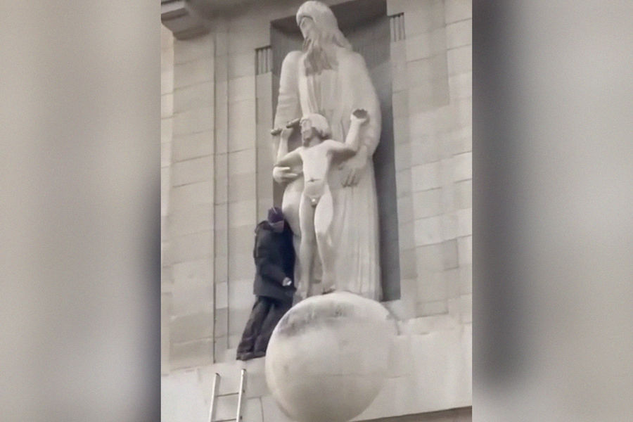 Активист попытался разбить статую Эрика Гилла на здании штаб-квартиры Би-би-си в Лондоне, сообщает Daily Mail.
