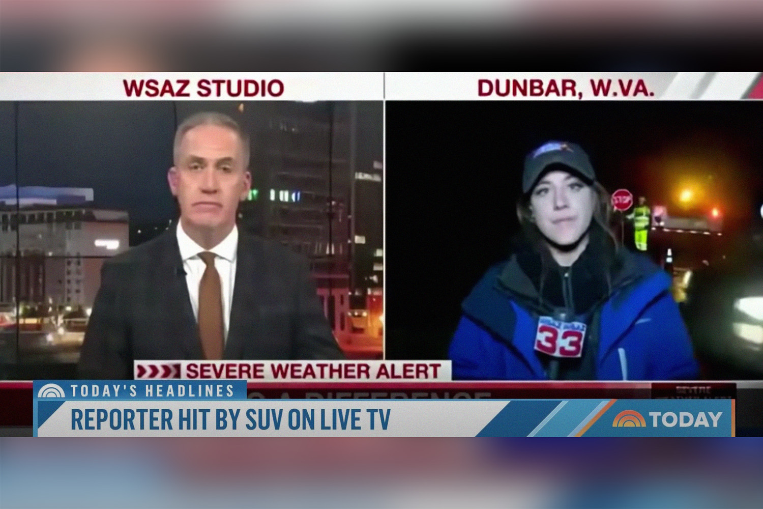 Тори Йорги, корреспондент телеканала в Западной Вирджинии, вела прямой эфир на месте прорыва водопровода. Девушка начала рассказывать зрителям, что произошло, когда на нее сзади наехала машина. Журналистка упала на землю, но через несколько секунд снова появилась перед камерами.