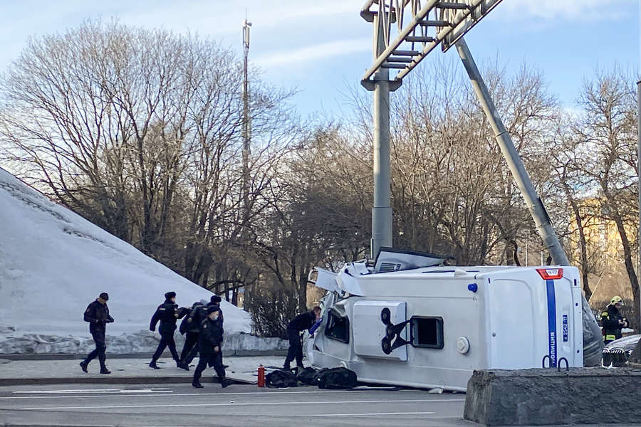 «Сегодня около 15.10 на пересечении Комсомольского проспекта с ул. Хамовнический Вал произошло ДТП с участием автобуса ГУ МВД России по г. Москве, который двигался с включенными специальными световыми и звуковыми сигналами. На момент ДТП в автобусе находились 29 человек, из которых 5 сотрудников полиции и задержанные за участие в несанкционированном мероприятии граждане», — говорится в сообщении.