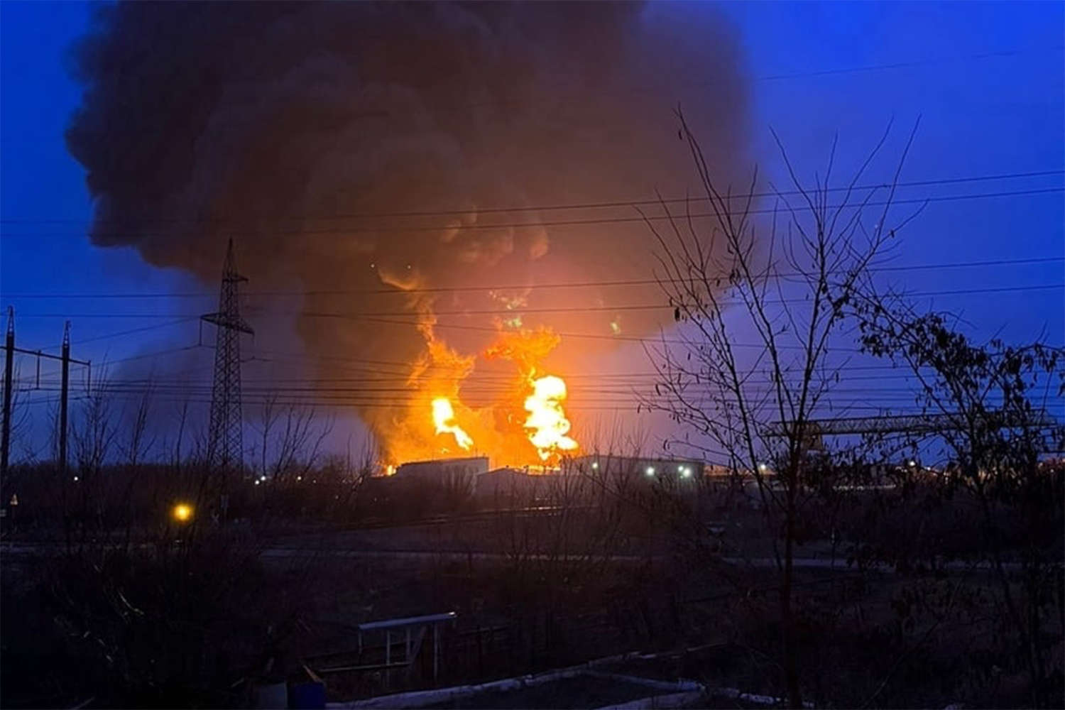 «Есть пострадавшие. Два человека. Это работники нефтебазы. Им оказана первая помощь, их жизни ничего не угрожает», — рассказал он.